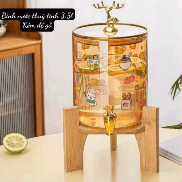 🔥 Bình đựng nước thủy tinh, Bình đựng trà chịu nhiệt có vòi dung tích 3,5l-Bình thủy tinh kèm đế gỗ siêu xinh đang giảm giá!