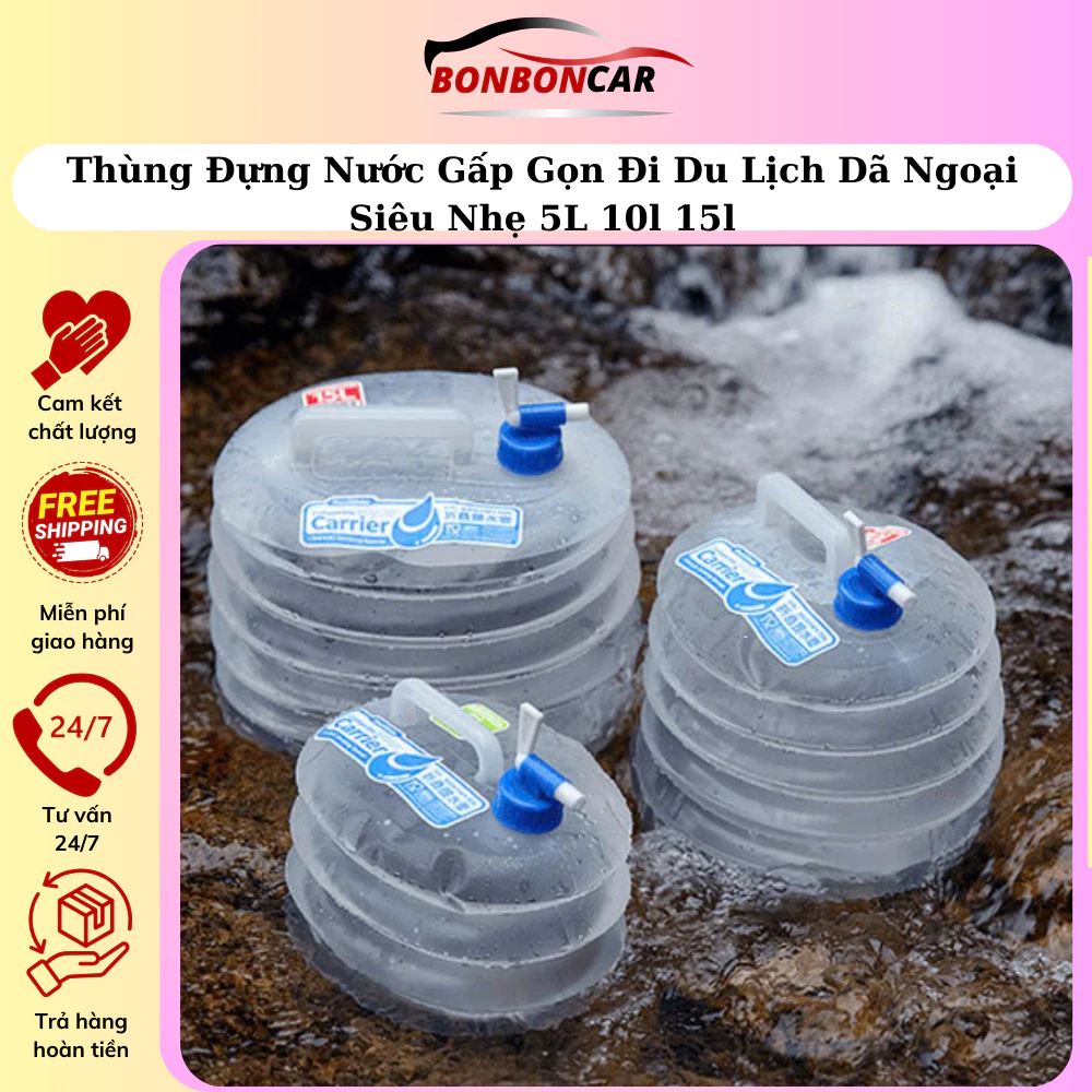 Nếu bạn đang tìm kiếm một bình nước gấp gọn siêu nhẹ và tiện lợi cho chuyến du lịch của mình, hãy tham khảo Bình Nước Gấp Gọn – Thùng Đựng Nước Gấp Gọn Đi Du Lịch Dã Ngoại Siêu Nhẹ 5L 10L 15L BONBONCAR.
