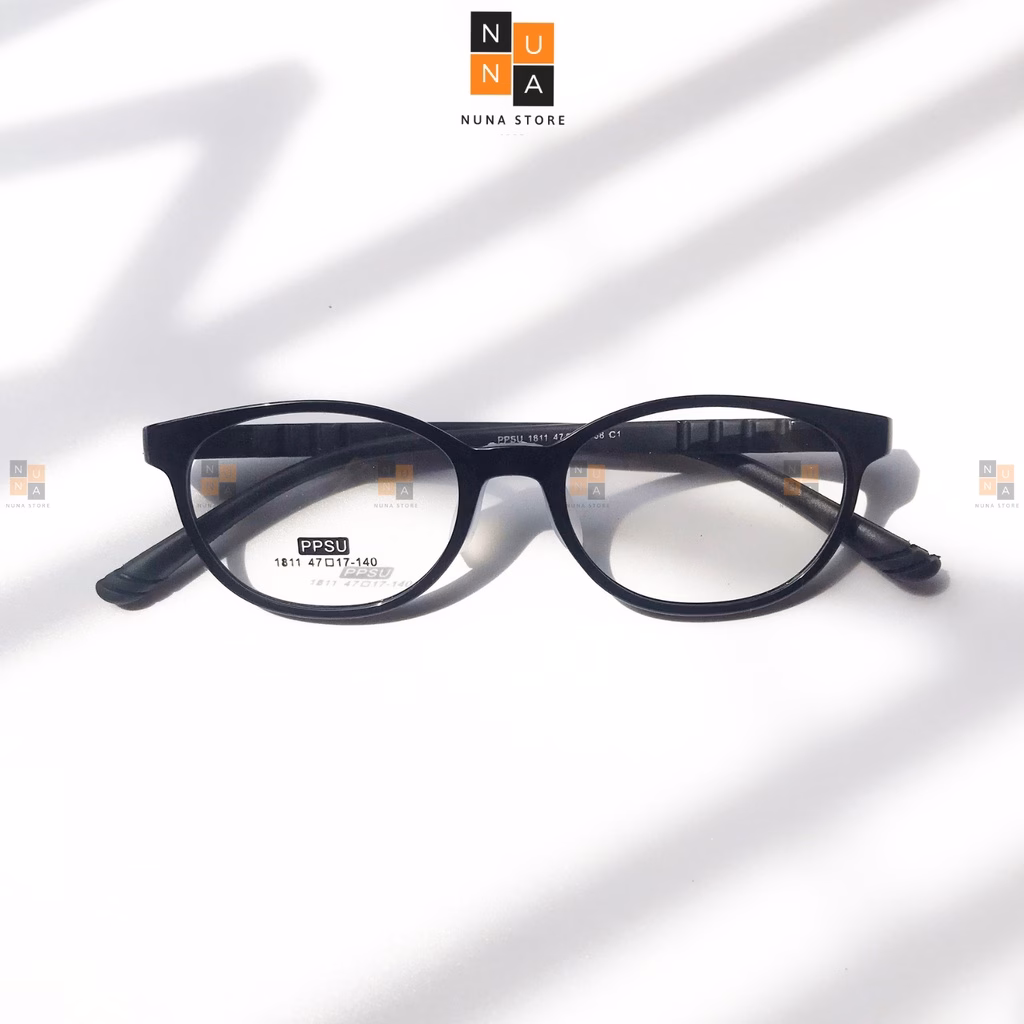 - Chất liệu khung kính: Nên chọn gọng kính làm từ chất liệu an toàn, không gây kích ứng da như nhựa, silicon hoặc PPSU.