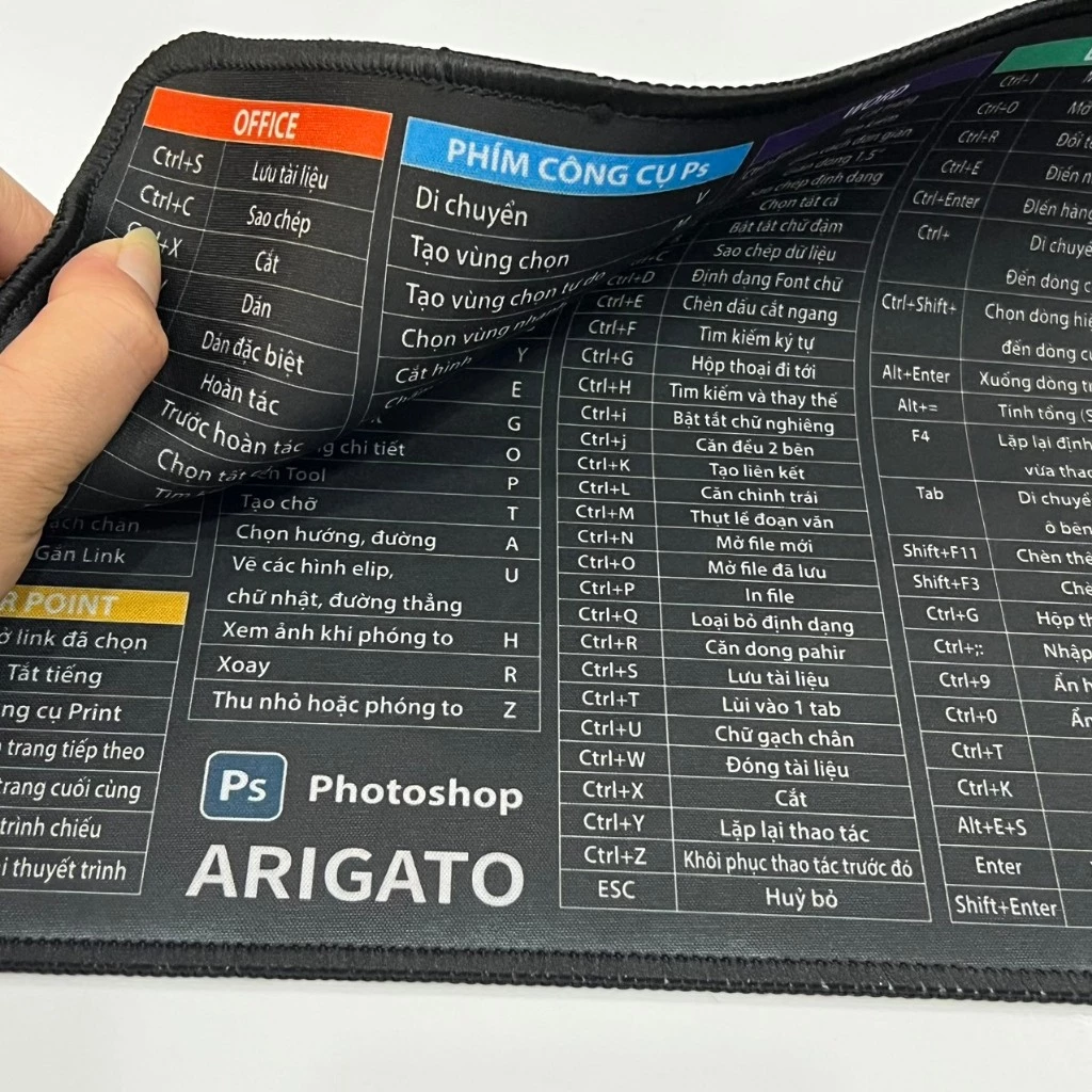 🔥 (Lót Chuột) Bàn Di Chuột Có Phím Tắt ARIGATO -Kích Thước 25cm x 30cm dày 3ly-Có Khâu Viền đóng túi đang giảm giá!