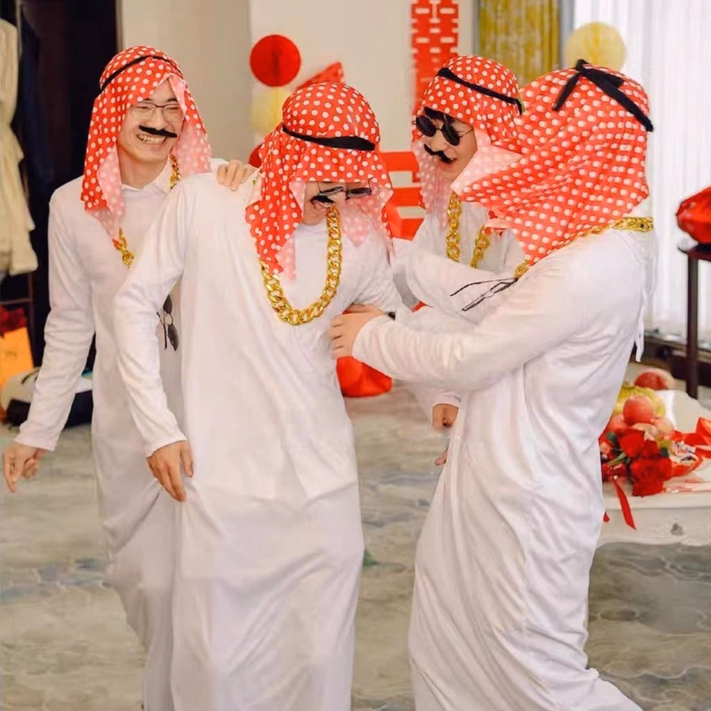 🔥 Đám Cưới Đón Trang Phục Vui Nhộn Chổi Anh Em Nhóm Ngộ nghĩnh Ả Rập Dubai Trung Đông Địa Phương Tyrant Áo choàng trắng Influencer đang giảm giá!