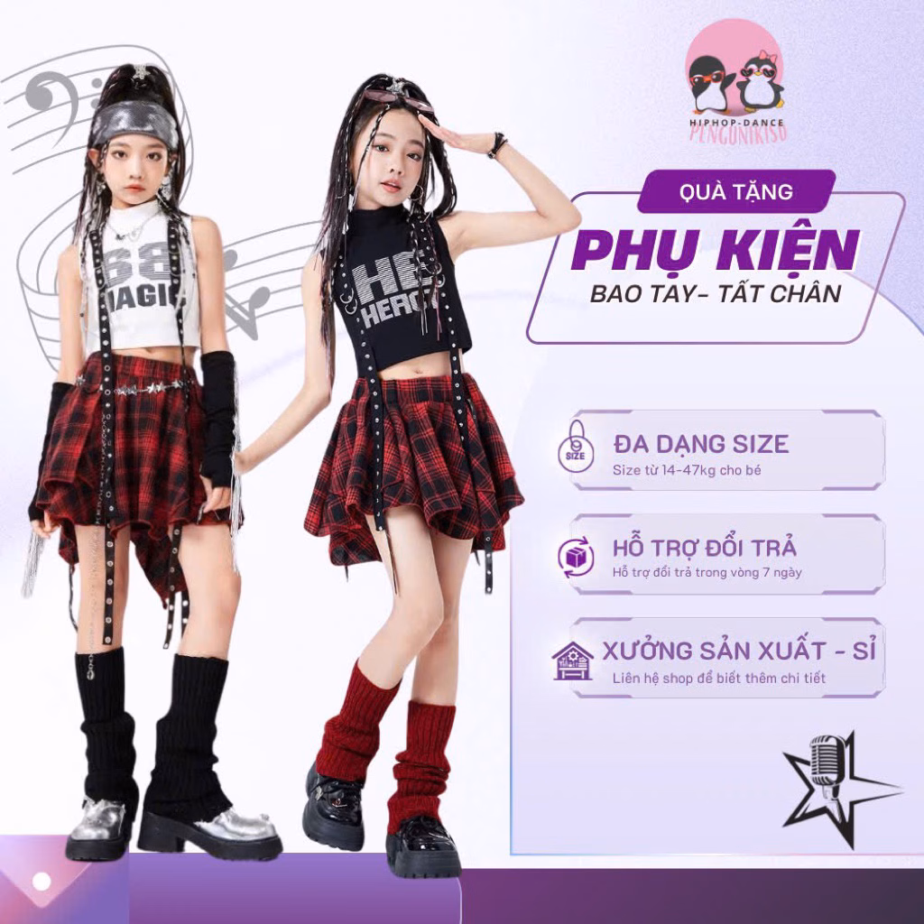 🔥 [Hỏa tốc] Bộ váy nhảy Hiphop hiện đại cho bé gái, set váy kẻ caro nhảy biểu diễn Zumba cho bé 15-48kg đang giảm giá!