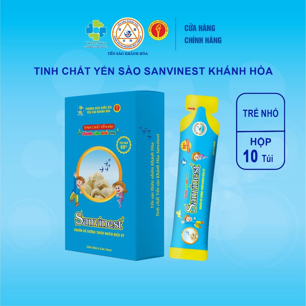 - Uy tín: Tinh chất Yến sào Khánh Hòa Sanvinest dành cho trẻ em được sản xuất bởi Công ty Sanvinest, một công ty uy tín trong lĩnh vực sản xuất thực phẩm chức năng